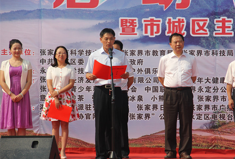 启动仪式上,以崇实南校学生代表的一首以“创新驱动发展,圆旅游胜地梦想”为题的精彩献词拉开了序幕,随后,永定区委副书记程漫致辞,市政府副秘书长田际陆通报了全市27届青少年科技创新大赛和全市第四届鸽子花科技创新奖评选结果,并对12位获奖学生代表进行了表彰。市人大常委会党组副书记、副主任陈红日代表市委、市人大、市政府、市政协对活动顺利启动表示热烈祝贺,对所有关心支持我市科普事业发展的广大科技工作者、科普工作者和社会各界人士表示衷心感谢。陈红日在讲话中强调,各级科协组织要紧紧围绕中心工作,以开展全国科普日活动为契机,大力普及科学知识,倡导科学方法,传播科学思想,弘扬科学精神,努力实现科普与公众的良性互动,不断提高人民群众的科学文化素质,努力形成学科学、用科学、爱科学的社会风气和民族精神,为早日实现“旅游胜地梦全面小康梦”凝聚正能量。