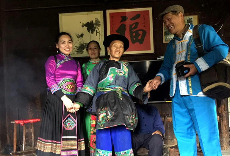 团员们自发的为村民义演《不知道该怎么称呼》和武陵山区扶贫攻坚《飞向蓝天》表演,歌唱引来了十八洞村苗寨乡亲,也赢来了苗寨乡亲们的阵阵掌声。在农家大场院大家合唱了《幸福歌》,跳起了精准扶贫的舞蹈《好日子红红火火》,并与苗族大娘联欢,曾与习近平总书记接见的大娘,满脸微笑,让艺术团感受到了精准扶贫为十八洞村所带来的新变化。