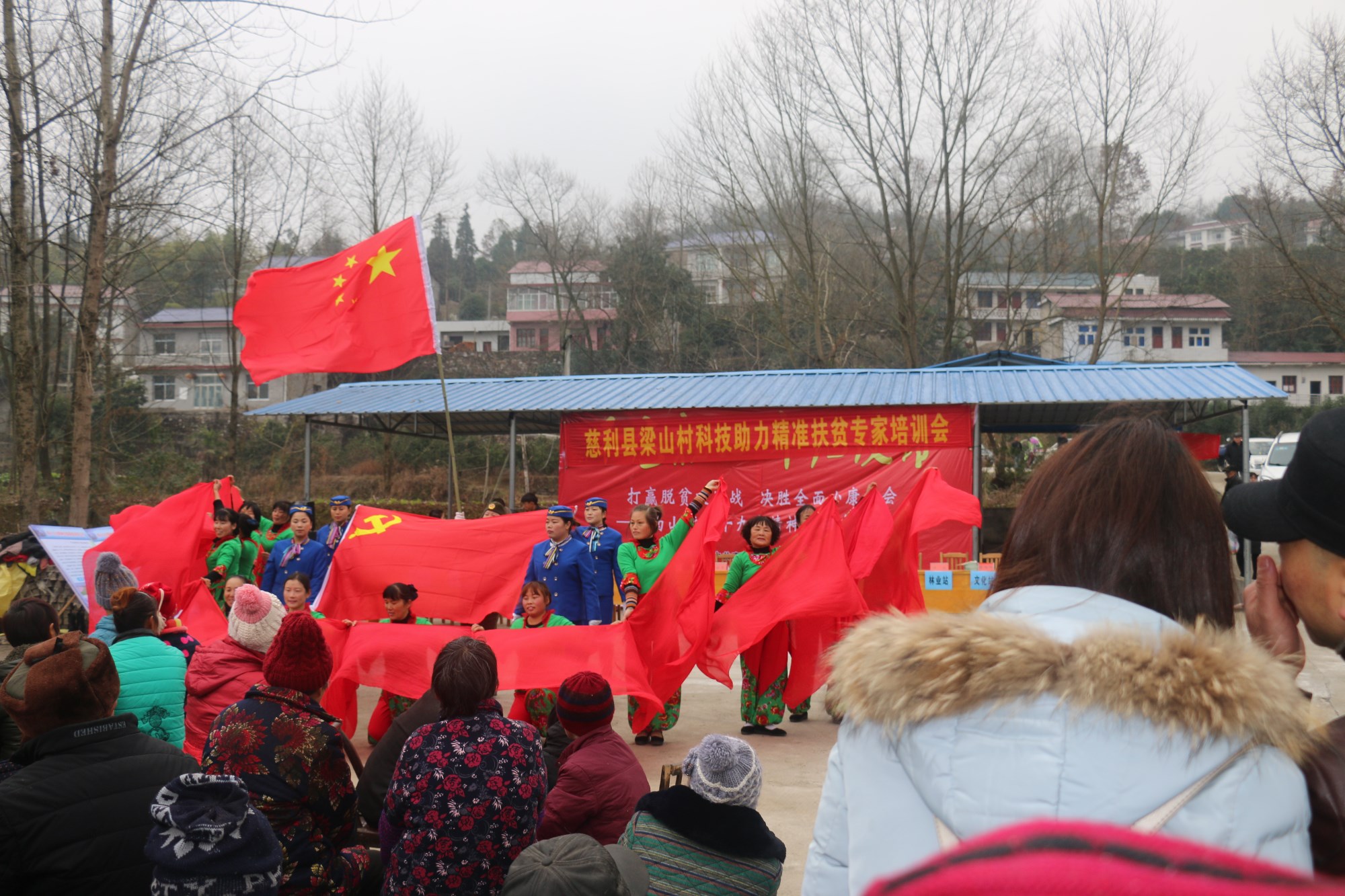 2018年1月17日,尽管北风呼啸,天气寒冷,位于南山坪乡梁山村群众文化广场,热闹非凡人头攒动,由梁山村广场舞爱好者自编自演的广场舞《红心向党》拉开了宣讲党的十九大精神,科技培训会的帷幕。