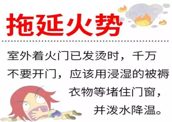 8、千万不要盲目跳楼,可利用疏散楼梯、阳台,落水管等逃生自救。