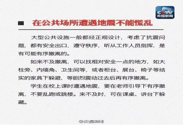 5月12日,是中国第九个“防灾减灾日”。我们应停下脚步,多多反思与学习。灾难几率虽然小,但防灾意识应人人具备。灾难发生时,你要如何应对?